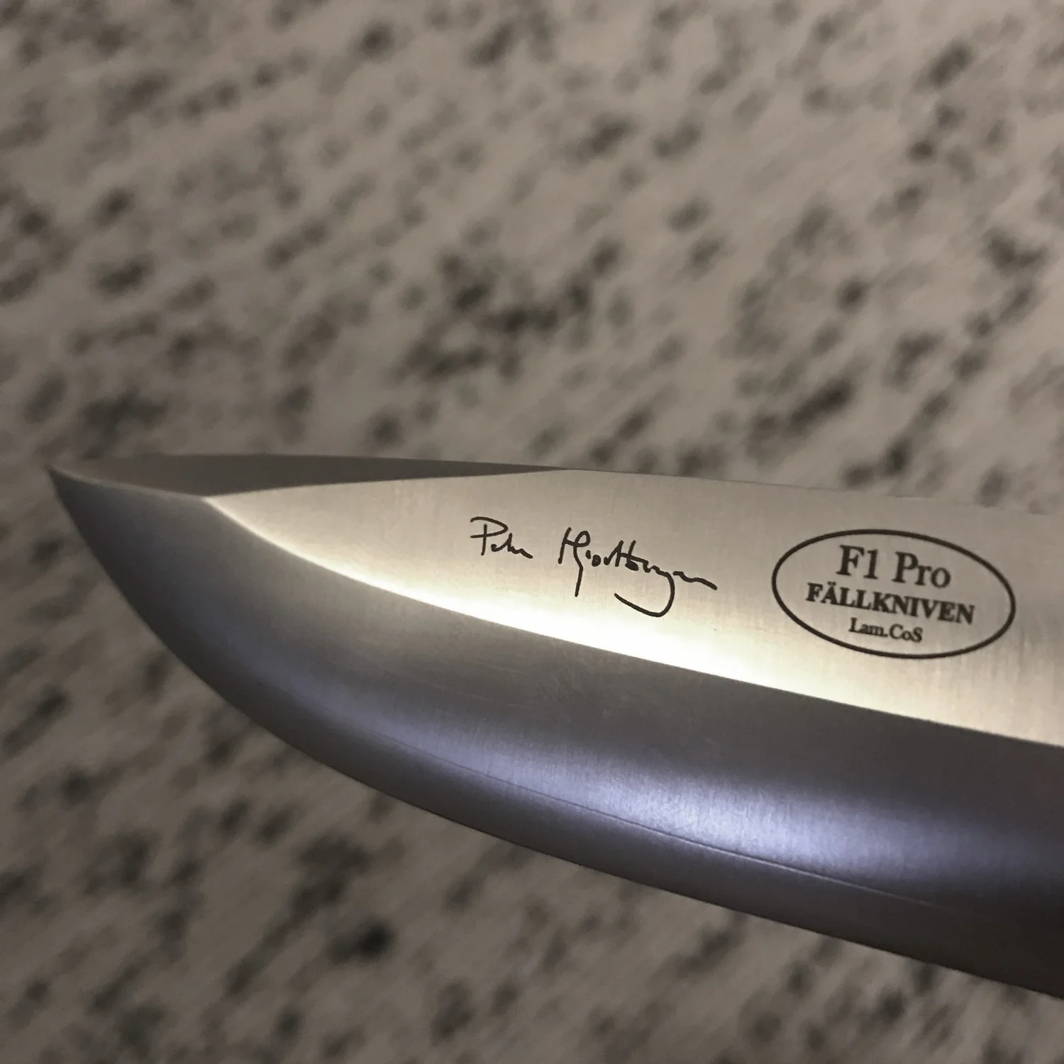 Fällkniven har sedan 20 år levererat sin F1a till Svenska armen och knivälskare världen över. F1pro är en utveckling på denna och det med råge. Det här är en F1a på steroider. Allt är bättre och i mailet från Peter Hjortberger förklarar han att detta kan vara den bästa kniv dom någonsin gjort. Priset ligger på nästan 4000 kronor och det kan kännas magstarkt, men vi på redaktionen vet att det inte går att tumma på kvalitet. Slår man ut priset per år man kan använda den så kommer det tillslut inte kännas så farligt. I lådan som kniven kommer i ligger även ett diamantbryne och en zytelslida som också är utvecklad för att hålla bättre och fungera bättre med molle fästsystem.