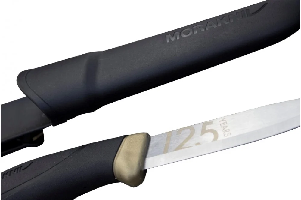 Hur gör man då en jubileumsutgåva av en kniv som kostar strax över hundralappen? Mora tog sin vanliga companion, la till guld-detaljer i plasten och graverade in 125 på bladet. Svårare än så behöver det inte vara. Problematiken då? jo, Morakniv firade 125 år förra året (2016) och kniven säljs alltså inte längre, den finns dock att hitta på eBay för ca 200-300 kronor för samlaren, Den vanliga companion-kniven hittar man hos varenda bygg-affär i hela världen.